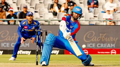 Willey went for 13 runs in the opening over, which included a six and a boundary from Brevis. Medium pacer Wiaan Mulder dismissed Roelofsen (10) in the fourth over, and Dwaine Pretorius removed Brevis in the fifth for 13 runs. A couple of boundaries from the middle-order batter Rassie van der Dussen took MI Cape Town to 44 for two after six overs.